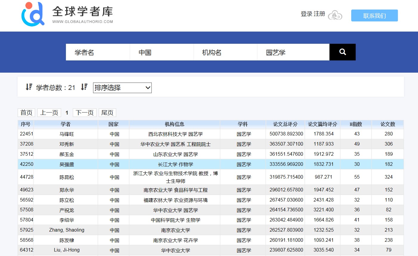 近日,国内全球学者库网站(http://www.globalauthorid.com/)公布了“全球顶尖前10万科学家排名”。我院永利集团y23455吴强盛教授以论文总评分333556.9692、论文篇均评分1832.731、论文数182、H指数30,入选该项排名,位居全球42250名,在国际园艺学科排名第23位,国内园艺学科排名第4位。