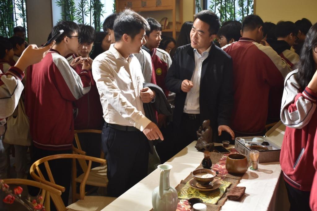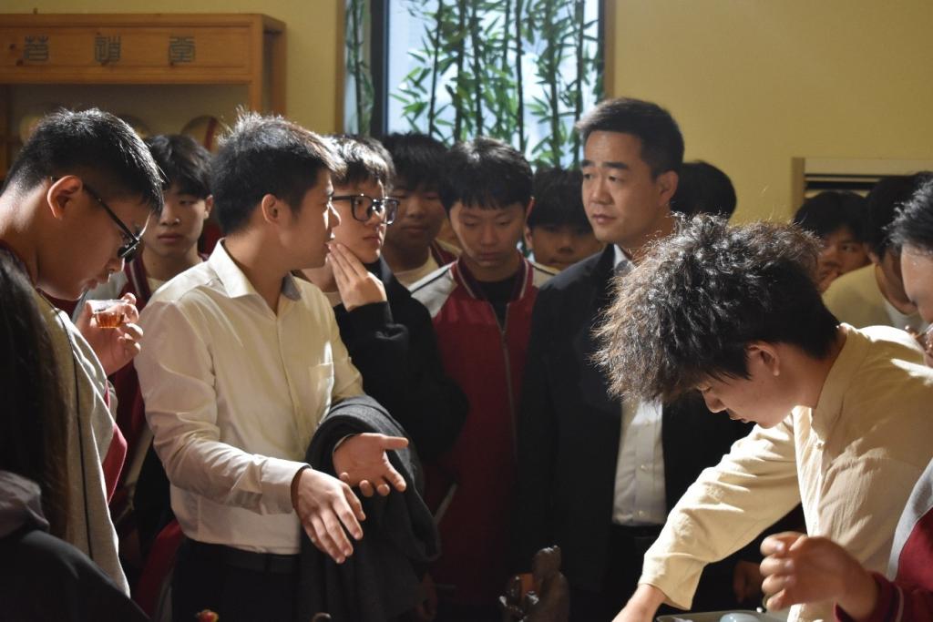 随后,众人随着吴山的脚步来到农科大楼,展开一场别开生面的教学活动。走进实验课堂,领略茶香文化,吴山亲自为大家介绍我院的实验项目,并邀请在校学生为研学同学们进行一场“茶”的艺术表演,现场气氛热烈。