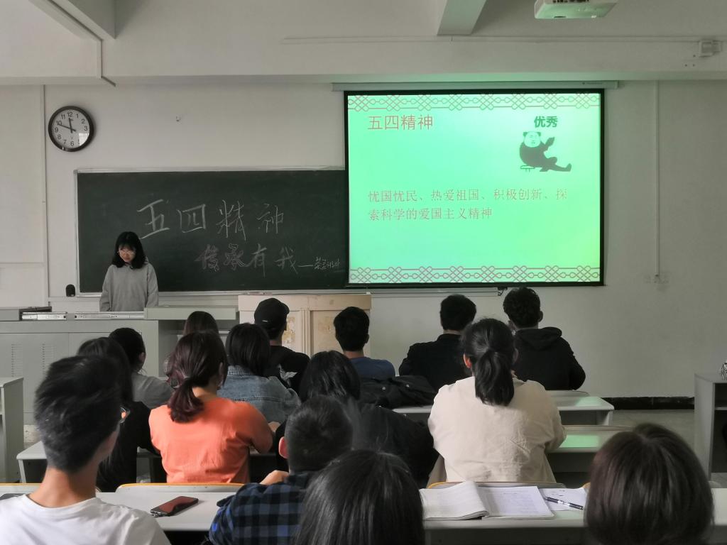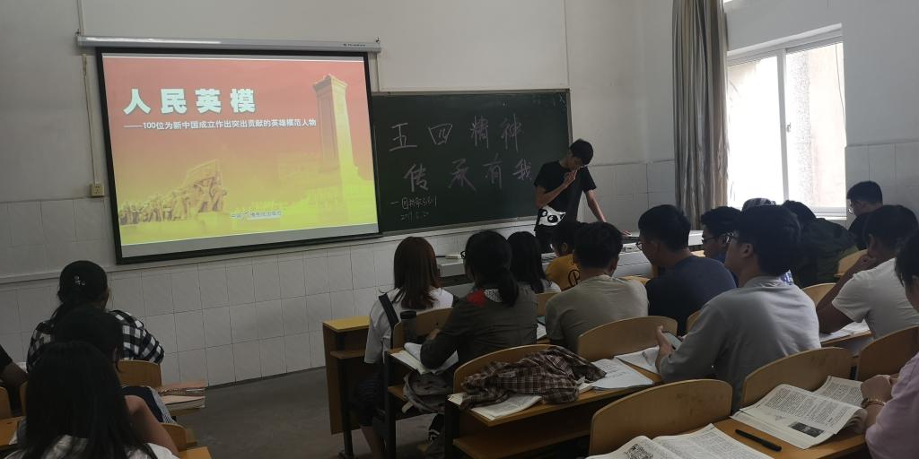 在关于主题为“五四精神,传承有我”的班团会通知下达后,我院各团支部都积极响应学校号召,根据自己班级实际情况,立足于班级特色进行精心策划,在团会开展过程中切合主题的同时也体现出自己的班级特色文化,拓展了主题团会学习的深度与高度。本次活动围绕五四运动和五四精神开展学习,主要包括《习近平:加强对五四运动和五四精神的研究、激励广大青年为民族复兴不懈奋斗》、《人民英模—100位为新中国成立作出突出贡献的英雄模范人物》、《建功立业新时代》等。此外,我院积极响应校团委号召,申报了观摩项目,并积极组织学院团支书分批次观摩学习了其他学院的示范项目。
