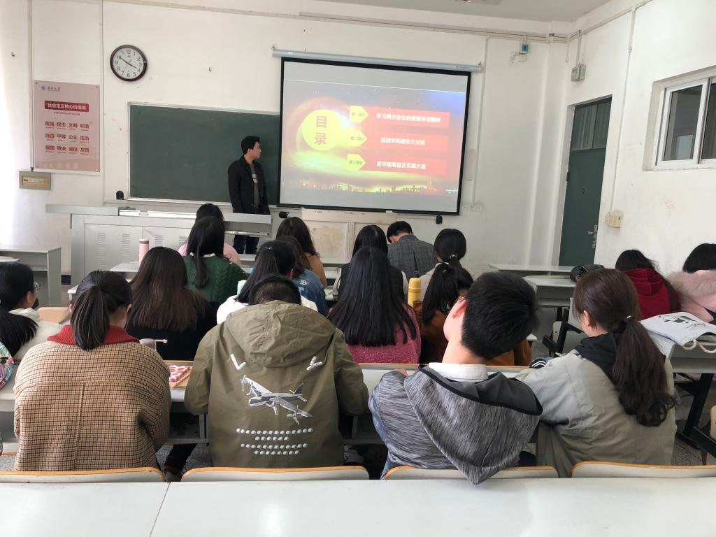 我院老师学生十分重视此次团会活动,各团支部积极响应学校号召,根据各自班级实际情况进行精心策划与前期筹备,按时积极地开展了此次活动,同学老师热情高涨,积极参与。本次团日活动包含两大内容:(一),开展学风建设大讨论。各班团支部都认真分析了本支部的学习现状,从学生个人、寝室、班级、学院、学校五个层面开展讨论,讨论内容触及了“为谁学习”、“怎样学习”、“学习的动力何在、目标是什么”、“如何做到全体学生的全面进步”等深层次问题,最终形成本班团支部对加强学风建设提出的有效措施。 (二),深入创建一流学习团支部。各班团支部都在前期一流学习团支部创建的基础上,把班团学风建设摆在首位,进一步明确了全班团支部学习的量化目标和目标达成的具体措施,确保了一流学习团支部的创建工作能落实、可量化、有成效。各个团支部都积极进行自我改进与提升,争做一流团支部。