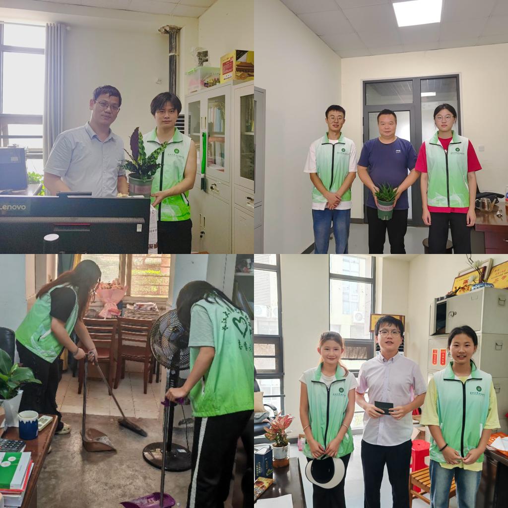 同学们提前手写贺卡,录制祝福视频。上午,志愿者同学们前往老师的办公室,通过献上祝福、赠送贺卡和鲜花盆栽,以及协助清扫办公室等方式,表达自己的感恩之情。办公室里洋溢着浓厚的尊师重教的氛围,每一张贺卡都承载着同学们对老师的深情厚谊,每一段祝福视频都记录了同学们对老师的真诚祝福和美好回忆。