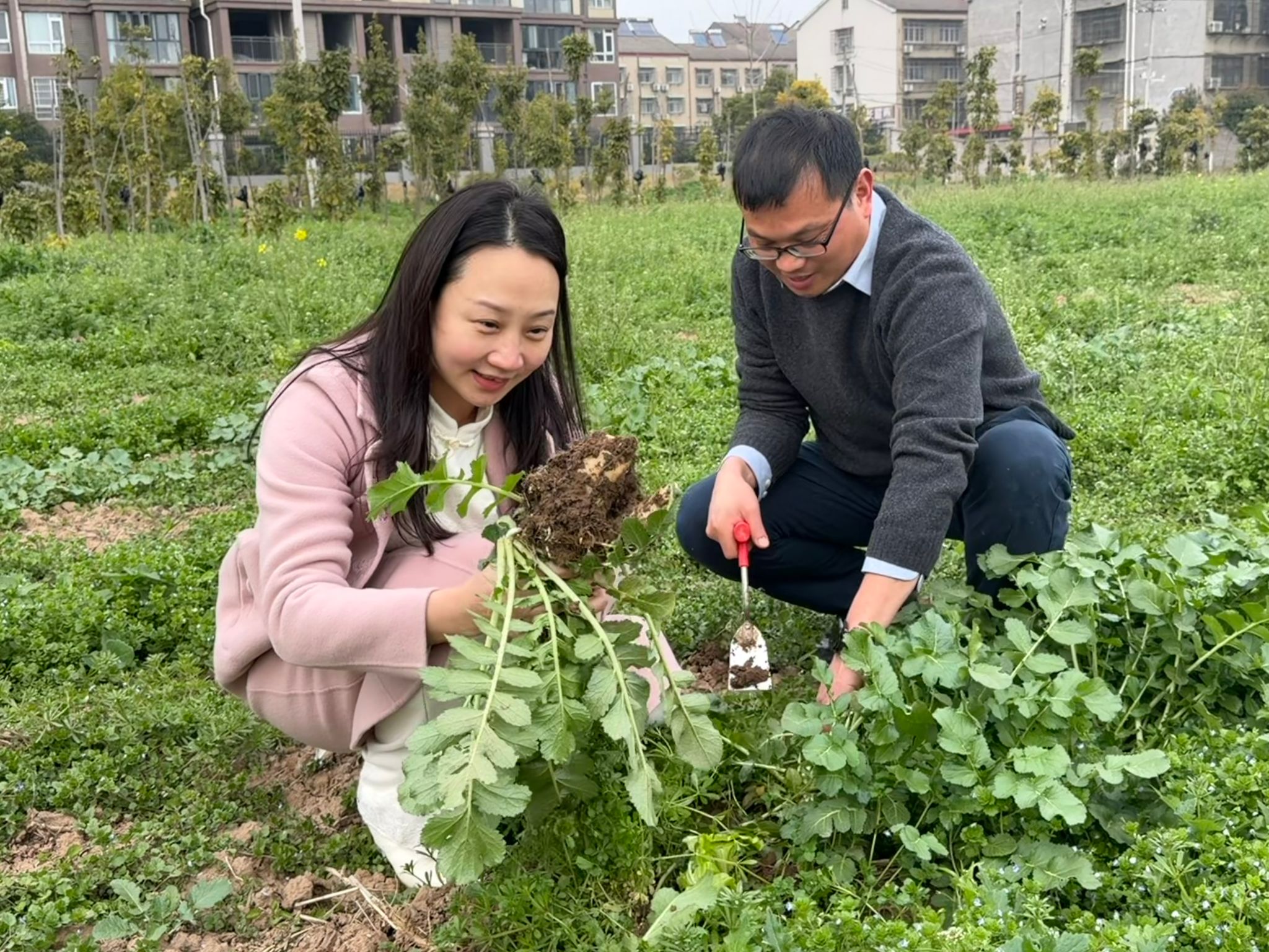 (通讯员 吴山)春风送暖,硕果盈枝。3月12日下午,学院领导与师生代表共同前往劳动教育基地,采收去年深秋播下的希望。萝卜饱满、白菜青翠,大家满怀喜悦投身田间收获,在躬耕劳作中真切体悟“一分耕耘,一分收获”的价值真谛,也为持续数月的劳动教育实践画上圆满句号。