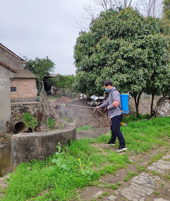 叶家保正在对所在村组房前屋后、垃圾桶及排水渠区域进行喷药消毒,对重点部位,还要喷洒三次,真正做到消杀彻底,确保疫情防控无死角。中国青年网通讯员 叶家保 提供