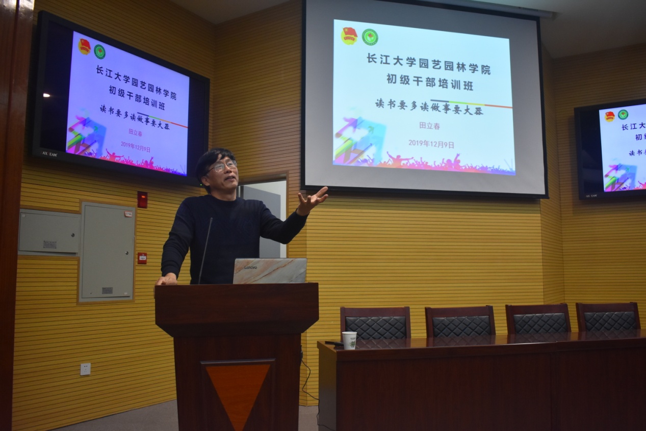 (通讯员:胡文旭 汪芙蓉)为提高学生干部和学生党员政治素养和综合能力,2019年12月9日晚7:00在农科大楼1056报告厅,永利集团y23455组织员田立春老师受邀给永利集团y23455学生党员和学生会全体成员、永利集团y23455和化学与环境工程学院2019年初级干部培训班成员授课。本次授课主题为 “读书要多读,做事要大器”。