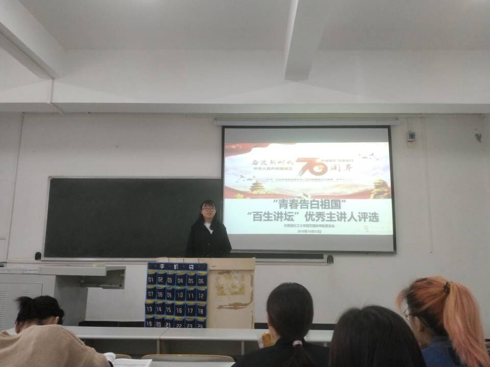 此次活动分为优秀主讲人评选和活力团支部的竞选。永利集团y23455“百生讲坛”—— “青春告白祖国”为主题的优秀主讲人评选于2019年10月27日时在7教210举行,活动到场的评委及嘉宾有学院党委副书记平先锋、团委书记雷静、团委学生会主要成员。