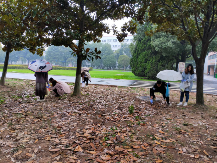 在下午13点50分,16名发展对象全部到达西校区7#208,经过讨论,大家明确了此次社会实践的范围、内容和要求后,便立刻行动起来。从六七教正门口开始,沿着图书馆、校内宿舍、操场一直走到五教,途中经过了三块面积较大的附属绿地,由于绿地紧邻建筑物,因此绿地内垃圾较多,多为纸屑和塑料袋;绕过五教后,我们沿着香樟大道一路走回六七教,在路途中,大家仔细检查各个角落,力求不放过一片垃圾;到达出发点我们继续向前,来到一教广场,在校前区继续清扫,最后在二教附近圆满结束此次活动。虽然此次的社会实践活动过程中下着雨,但丝毫没有动摇同学们的积极性和参与性,大家都能克服环境的不便,认认真真地完成任务。经过近两个小时的清扫后,校园变得更加干净整洁,同学们心中也充满了自豪和喜悦。