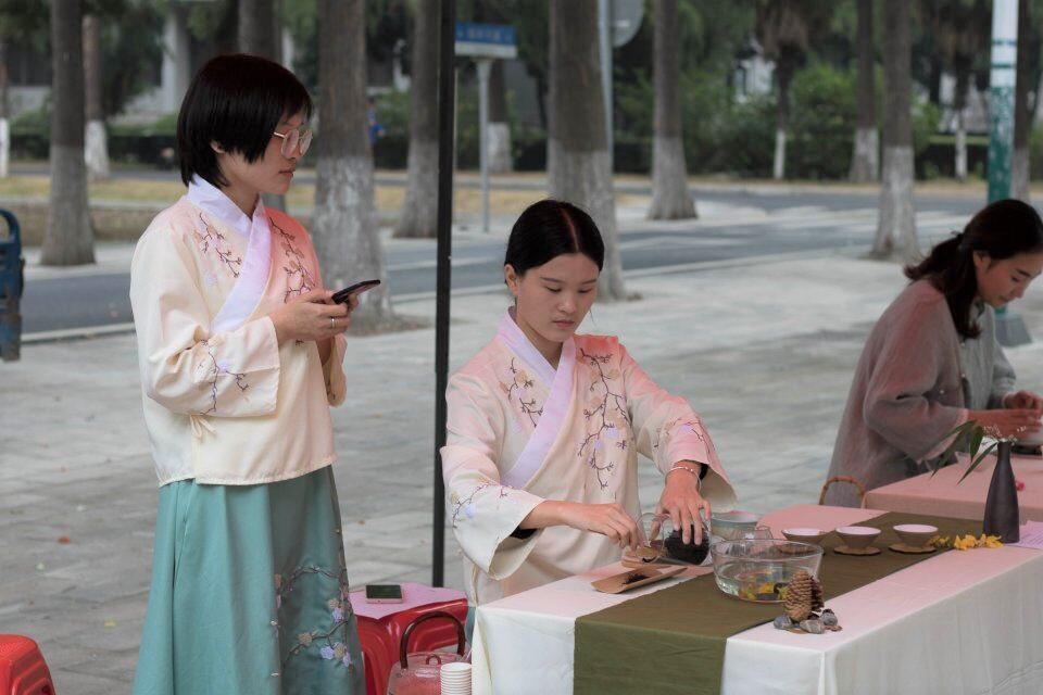 (通讯员:阮丹妮)为了让学生更加实质性的理解所学专业,永利集团y23455茶学职31601在校园内进行了为期两天的专业实习,10月13至14日下午15:00至18:30分别在在风华园、六七教广场进行。本次活动主要内容是优秀作品展演暨销售,院副书记、副院长及专业老师莅临现场指导,茶学16级全体同学参加此次实习。