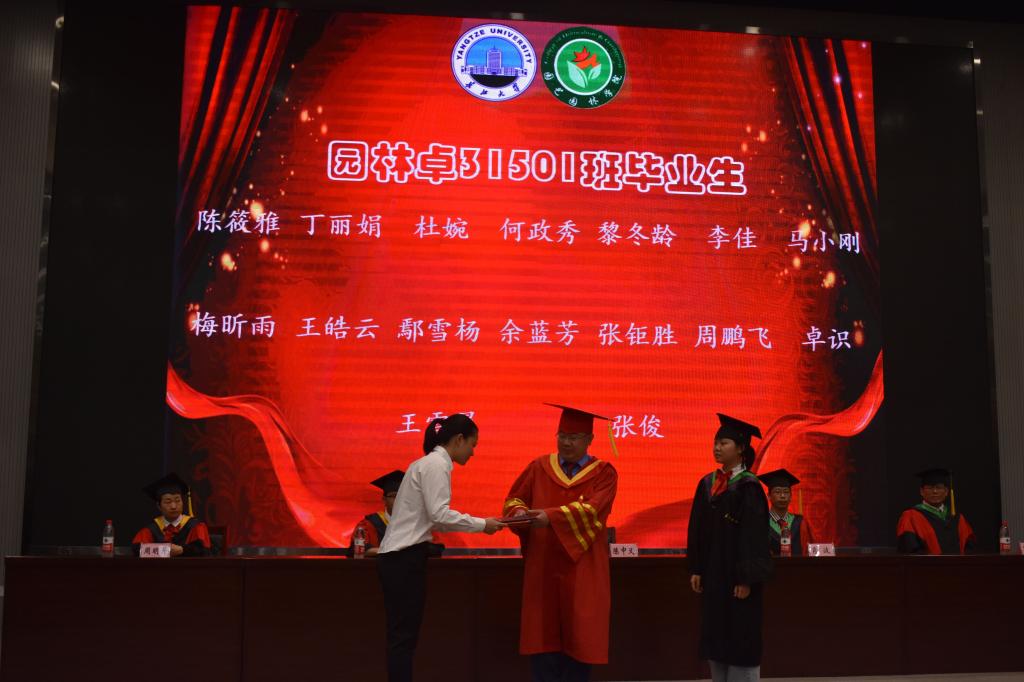 14:30整获得yl23455永利集团2019届学士学位证书的学子们依次上台,陈中义教授与他们亲切握手、为他们拨穗、颁发证书并合影留念。一切都在告诉着同学们,祝贺他们大学本科阶段的学习圆满结束,这一段青葱岁月,象牙塔里的时光就要告一段落了,接下来的人生或许精彩或许艰难,但都需要倍加努力。