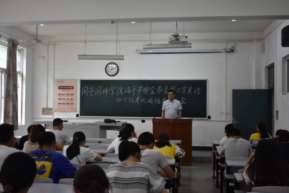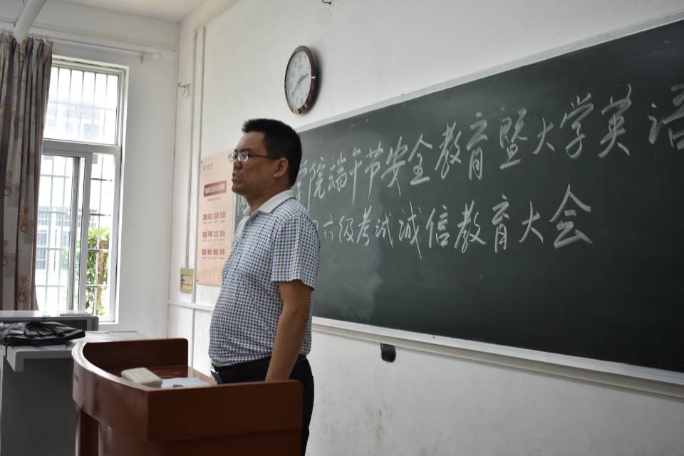 (通讯员:易蓓/施蕾)端午节即将来临,全国大学生英语四六级考试也将接踵而至。为提高学生安全意识并贯彻落实我校对假期安全教育及管理方面的要求,严肃考风考纪,倡导学生诚信应考,永利集团y23455在六月五日十二时于6教104教室举行端午安全教育暨全国英语四六级考试诚信教育大会。本次大会由我院学工办主任孙永强老师主持,我院各班班长及团支书,团委学生会主席团成员及各部部长到场聆听。