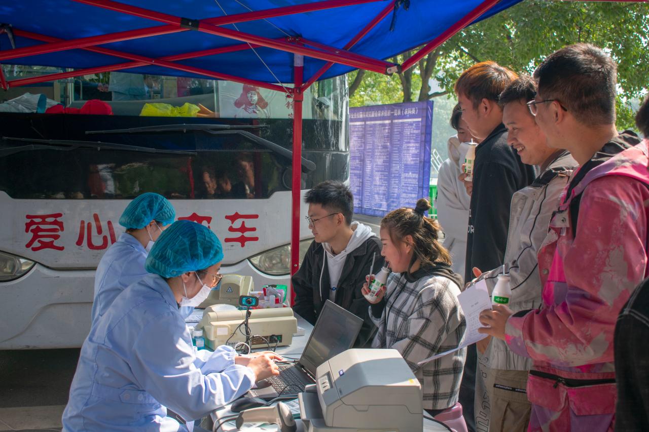 (通讯员:李攀 赵宇 陈明)为预防今年秋冬季节疫情反弹,保障血液资源供应,发扬无私奉献的精神。同时,为了培养青年学子的奉献意识和服务意识,永利集团y23455青支队和荆州市中心血站工作人员联合发起了以“热血战疫,你我同行”为主题的无偿献血活动。本次活动由全体青支队成员共同组织开展,于yl23455永利集团西校区风华园主干道举办。2020年10月29日上午10时,青支队志愿者和荆州市中心血站工作人员准备就绪。广大学子积极参与,一股无偿献血的爱心热潮在长大校区内澎湃而起。本次献血活动中,献血流程规范,医务人员专业,志愿者们实时维护现场秩序,轮流为同学们服务,组织献血同学依次进行信息登记、血液类型检验、静脉采血等相关准备工作。