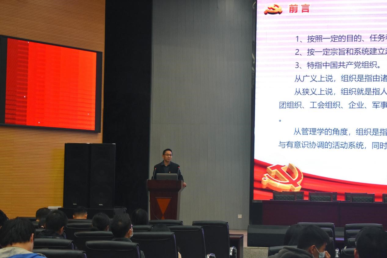 首先,彭文秀简要介绍本次培训人员以及大会流程。随后,平先锋就大会主题提出“党的组织路线是什么?什么是组织?党的建设质量是什么?”三个问题展开培训。