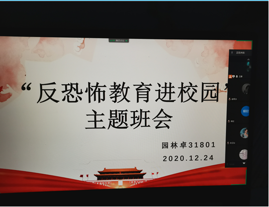 大学校园虽然是一个相对安全的环境,但也不能完全避免此类情况的发生,为保证我院的安全与稳定,保障学院的教学、工作、生活秩序不受影响,防止和避免恐怖事件的发生,努力营造平安和谐的校园环境,永利集团y23455于2020年12月23日-27日以班级为单位组织召开了“反恐怖教育进校园”的主题班会。