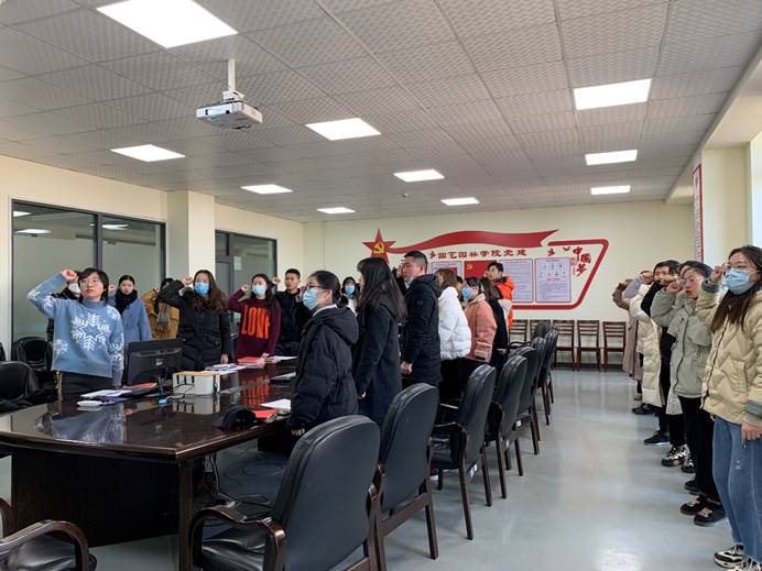 此次会议共四项议程,分别是重温入党誓词、集体诵读党章、学习党的创新理论、开展民主评议党员活动。首先,开展主题党日活动,全体党员一齐重温入党誓词,依次诵读党章,共同学习党的理论知识。随后,进行党员民主评议,每位党员联系自己的思想政治、学习工作和生活作风等进行了深刻的总结。同志们根据自评和互评情况,按照“优秀、合格、不合格”三种等次,对党员进行民主评议与投票,根据三分之一评优比例,共评选出郭欣媛等13名优秀党员。