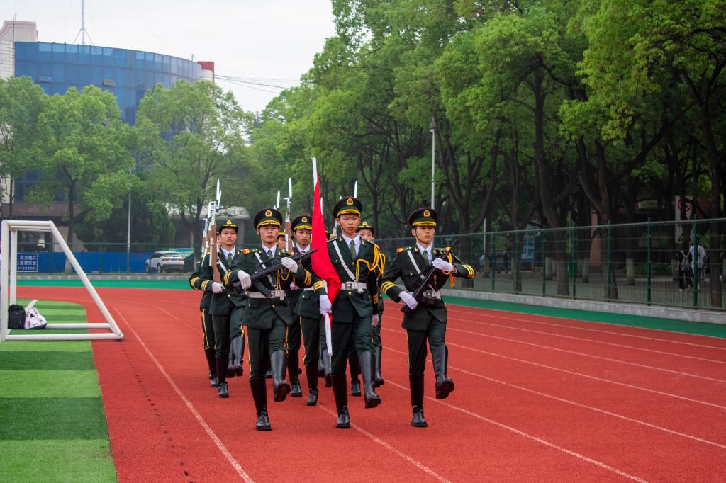 仪式开始,所有人员共唱红歌《共筑中国梦》后,升旗仪式正式开始 。国旗护卫队的队员们迈着整齐的步伐,护送国旗入场。伴随着庄严的国歌,五星红旗冉冉升起,全体师生怀着自豪和崇敬的心情,凝视着飘扬的国旗。