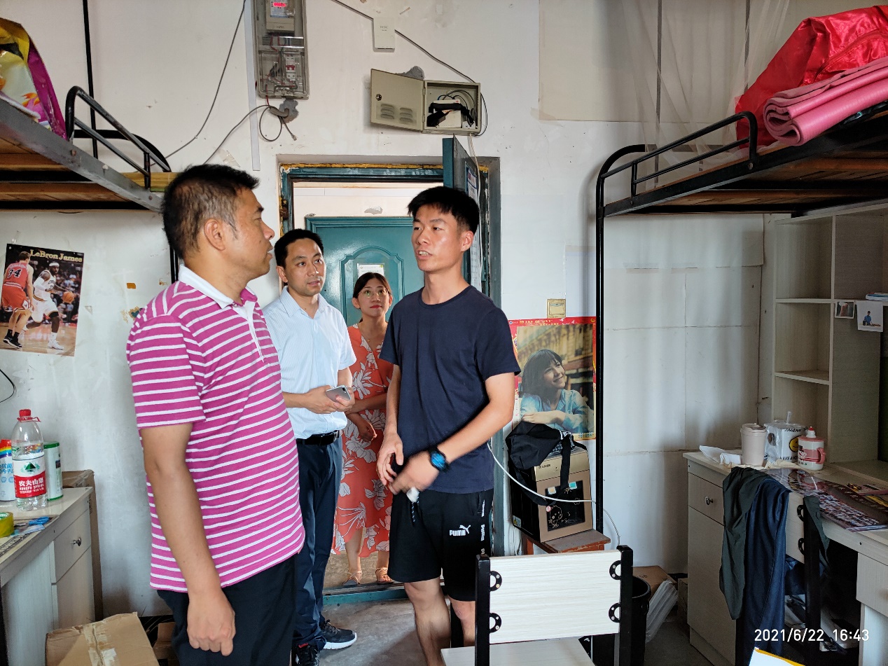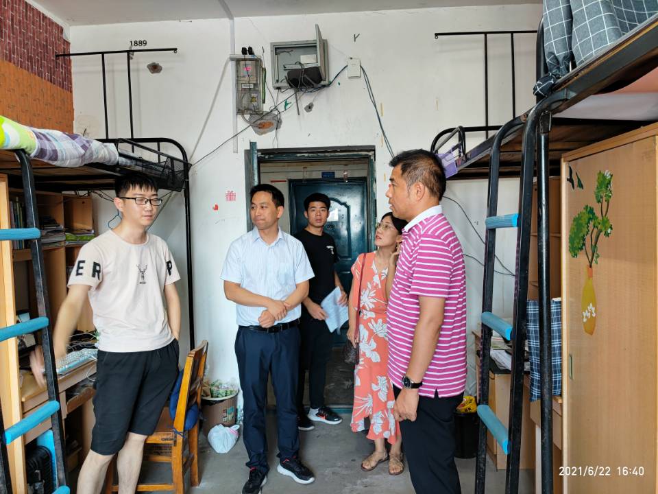 (通讯员:章崇烁 彭文秀)6月22日下午,永利集团y23455院长许锋、党委副书记平先锋、学工办主任彭文秀、毕业生年级辅导员吴山等老师走访毕业生学生寝室,详细了解毕业生学习、生活、就业和思想情况,加强毕业生安全教育,引导毕业生文明离校。
