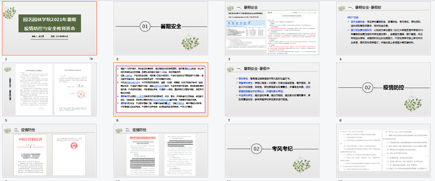 6月27日前,由各年级辅导员和各班班主任分别组织召开学生骨干会议和主题班会,传达学校暑期安全、疫情防控、考风考纪、滞校须知、返校须知等各项要求。要求以班级为单位签订《高等学校暑假安全责任书》,做到全覆盖、无遗漏,特别提醒同学们注意暑期防溺水、防骗、防盗、防火、防交通安全等问题,同时强调暑期留校的学生,外出锁好宿舍门窗,保管好随身贵重物品;注意用电安全,离开宿舍及时断电,不在宿舍乱拉乱接电线,不使用大功率电器、劣质插座和劣质充电器,严防火灾事故,经常与家里沟通,遇到特殊情况,一定要及时与家长和老师电话联系等。同时,要求各年级、各班级对学生暑期离校、滞校信息做好审批与统计,离校时间和去向、滞校申请必须经家长同意且报相关负责人审批。
