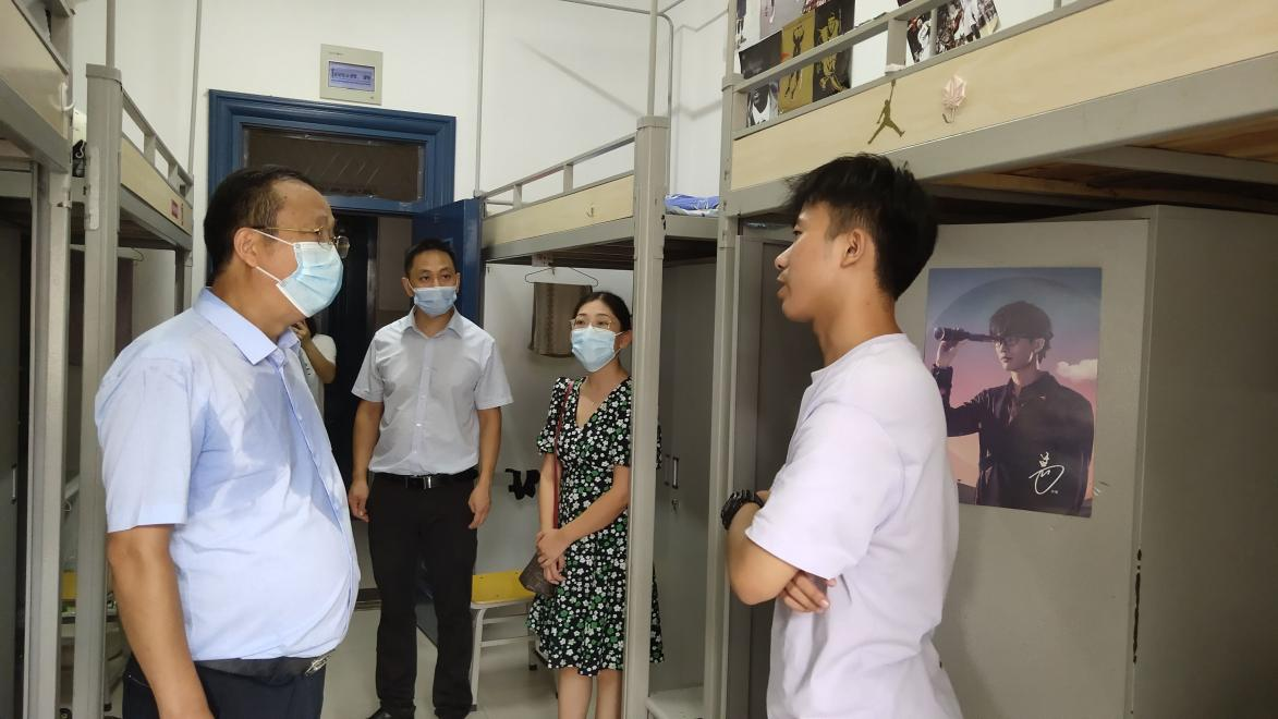 刘校长一行首先前往本科生河滨公寓,确认2021级新生报到情况,关心新生们进入大学第一天的学习生活状况,鼓励新生们尽快适应大学生活,同时叮嘱大家遵守疫情管控要求,注意宿舍安全和卫生。学院领导和老师也嘱咐新生们在学校如果遇到任何困难随时向学院寻求帮助,会在第一时间解决。