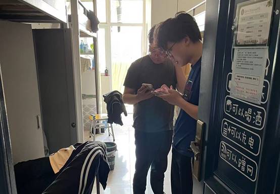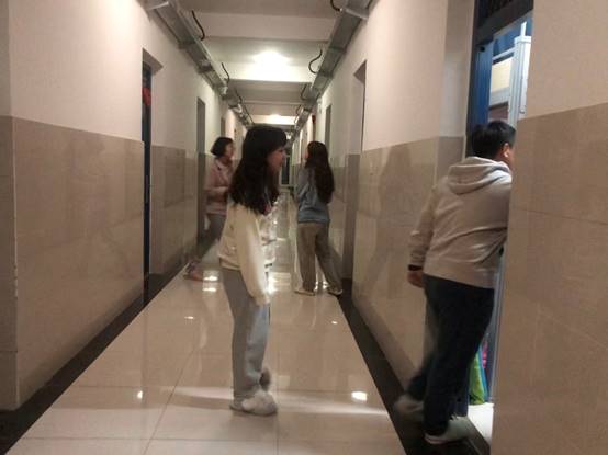 通过检查发现学院寝室整体卫生情况良好,寝室无违规使用大功率电器现象,每间寝室卫生基本合格、学生都配备有体温计、口罩等防疫必备物质,在检查中发现有极个别学生不在寝情况。在突击检查结束后,学生会成员在学生工作群中向彭文秀老师汇报各楼栋检查情况。