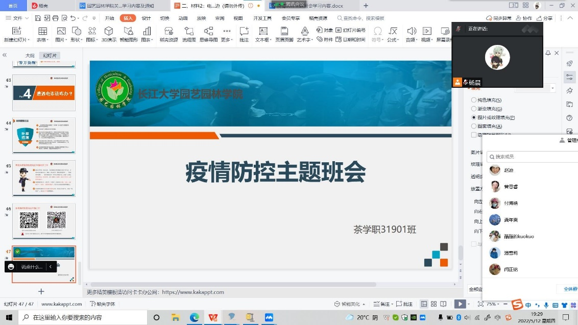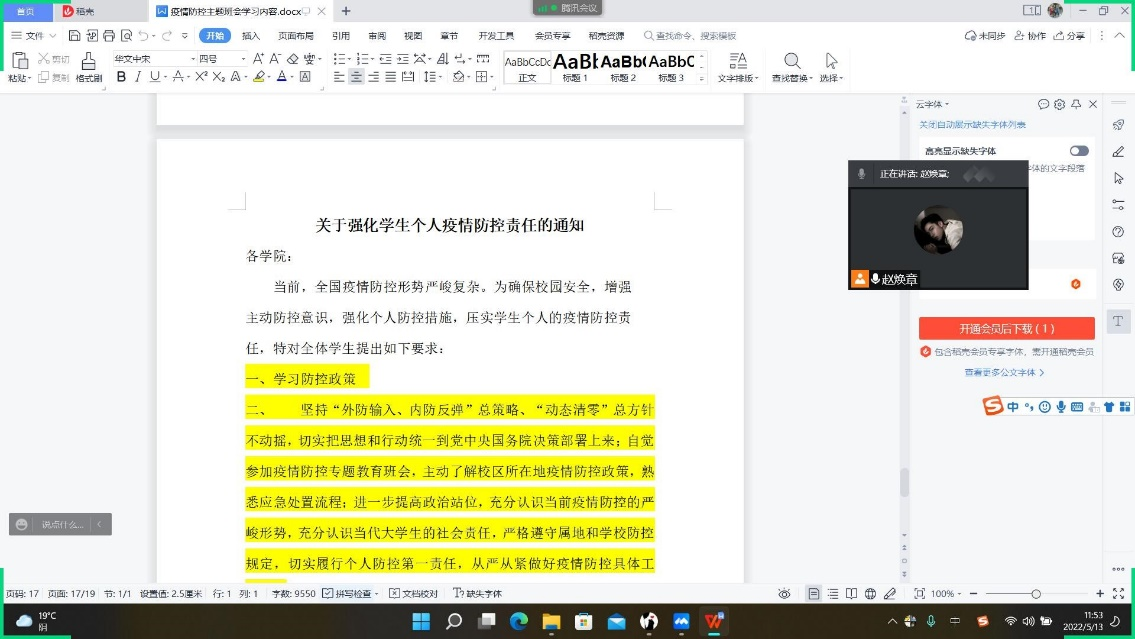 班会内容主要带领同学们认真学习《高等学校新冠肺炎疫情防控技术方案(第五版)》、《近期研究生疫情防控工作提示》和《yl23455永利集团新冠肺炎防控指挥部通告》(2022年第5号)等相关制度和要求,并列举具体案例,向同学们讲清楚讲疫情防控形势的严峻性、实施疫情防控措施的严肃性、高校在疫情面前的“脆弱性”。