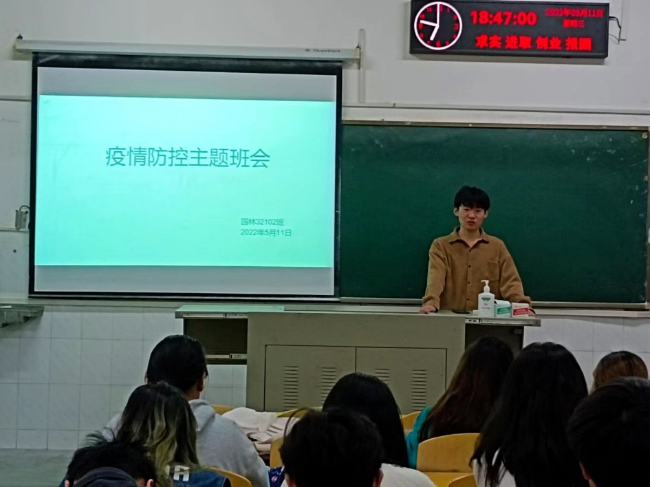 班会上引导学生要遵章守纪,严格履行非必要不出校、非必要不离校、非批准不返校的要求;要求同学们积极配合学校各项防疫工作,自觉接种第三剂新冠病毒疫苗,校内活动(体育活动除外)必须佩戴一次性医用口罩,每日自觉按照学校规定进行健康监测,并全方面地在学生群体中普及防疫知识、传达防疫要求。同时老师们还鼓励在校同学要积极参加学校、学院组织的活动,丰富宅寝、宅家生活,引导学生养成早睡早起不熬夜和日常健身等良好生活习惯,关注心理健康,学会用正确的方式宣泄自己的情绪。强调班级学风建设,引导学生积极参加线上春招双选会,尽早确定毕业去向,为大学生涯画上圆满的句号。