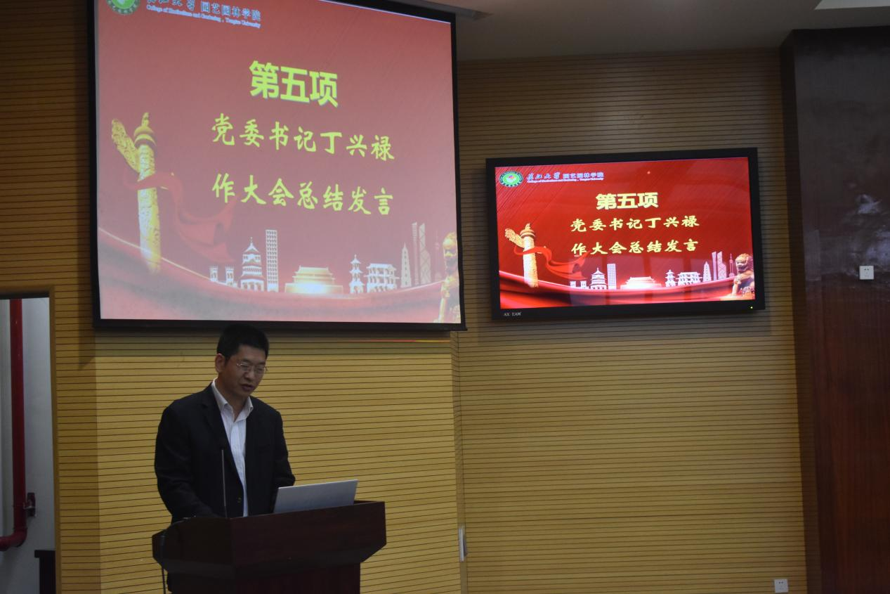 最后,党委书记丁兴禄做大会总结发言,感谢全体教师辛勤的付出,衷心祝愿全体考研学子取得骄人成绩,希望他们在未来求学路上始终秉持“明德笃学、精艺致美”的院训,不忘初心,砥砺前行。同时,寄语2023届同学以此次大会为契机,提出四点建议:一、注重劳逸结合;二、明确自身定位;三、保证效率第一;四、始终相信自己。
