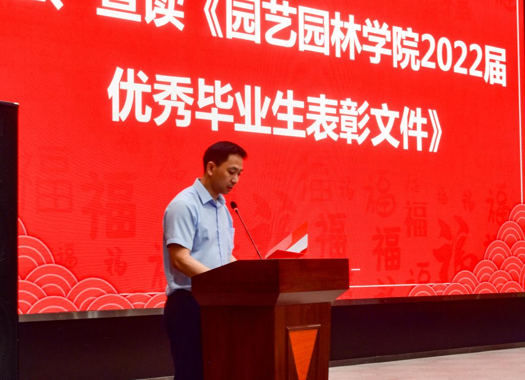(通讯员:白塔娜)2022年6月9日上午,永利集团y234552022届毕业典礼暨学位授予仪式在农科大楼1058报告厅隆重开幕。此次活动的与会人员有学院党委书记丁兴禄、院长周明芹教授、副院长肖波、党委副书记平先锋、刘奕清教授、朱进教授、刘志雄教授、朱进教授、风景园林系主任郭晓华、书记张威威、园艺系书记叶家保,教学办主任吴宗军、院办主任刘刚,以及全体辅导员、毕业年级班主任和全体毕业生等。仪式由学工办主任彭文秀主持。
