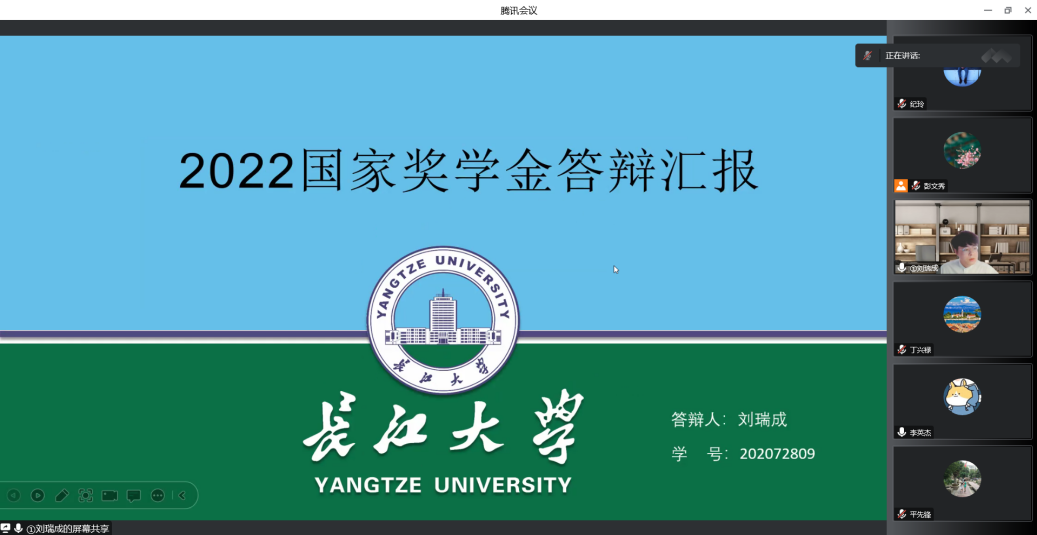 首先,彭老师向线上的各位老师和同学说明此次答辩评审会的规则和办法,提出的问题给予解答;接下来,参与国家奖学金答辩的6名候选人依次打开摄像头,进行5分钟的PPT汇报,并回答现场评委提出的问题。