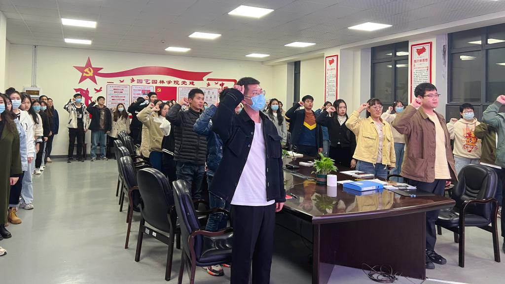 最后全体同志起立高举右拳,重温入党誓词,坚定而响亮的声音回荡整个会议室。