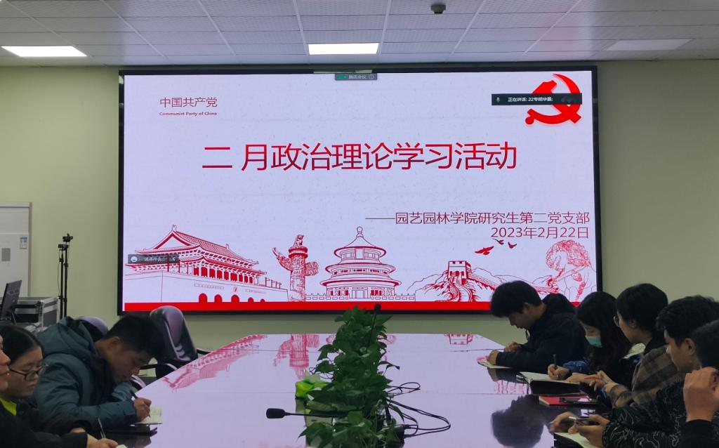 (通讯员:靳凯竣 杜雨菲)2月22日晚7时,永利集团y23455研究生第二党支部在农科大楼3002会议室召开了2023年2月份政治理论学习会暨2022年度组织生活会和党员评议活动,研究生第二党支部全体成员参加了学习,会议由支部副书记程刘柳主持。