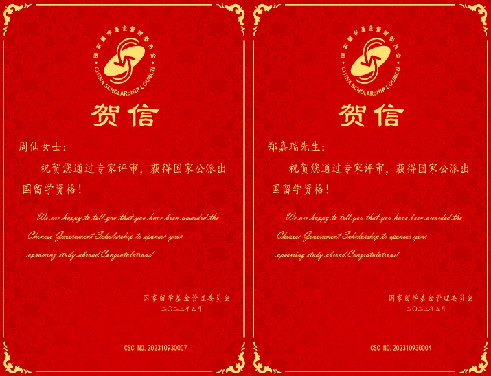 近日,国家留学基金委公布了“2023年创新型人才国际合作培养项目”录取名单,我院园艺植物资源与利用专业博士研究生周仙和郑嘉瑞同学获得国家公派留学资格。