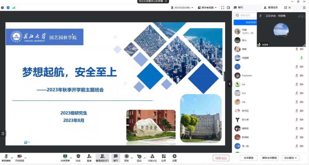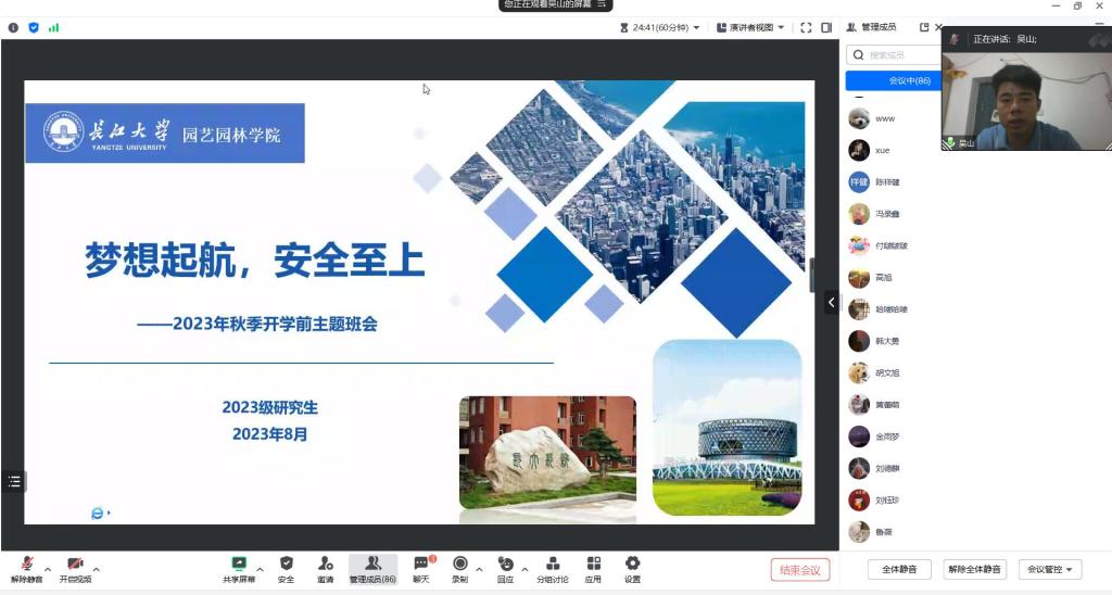 (通讯员:邓婧)闻着金秋的气息,迎着收获的季节,又步入新学期工作和学习的旅程。2023年8月24日上午10点,永利集团y23455组织2023级研究生线上召开以“梦想启航,安全至上”为主题的开学前主题班会。