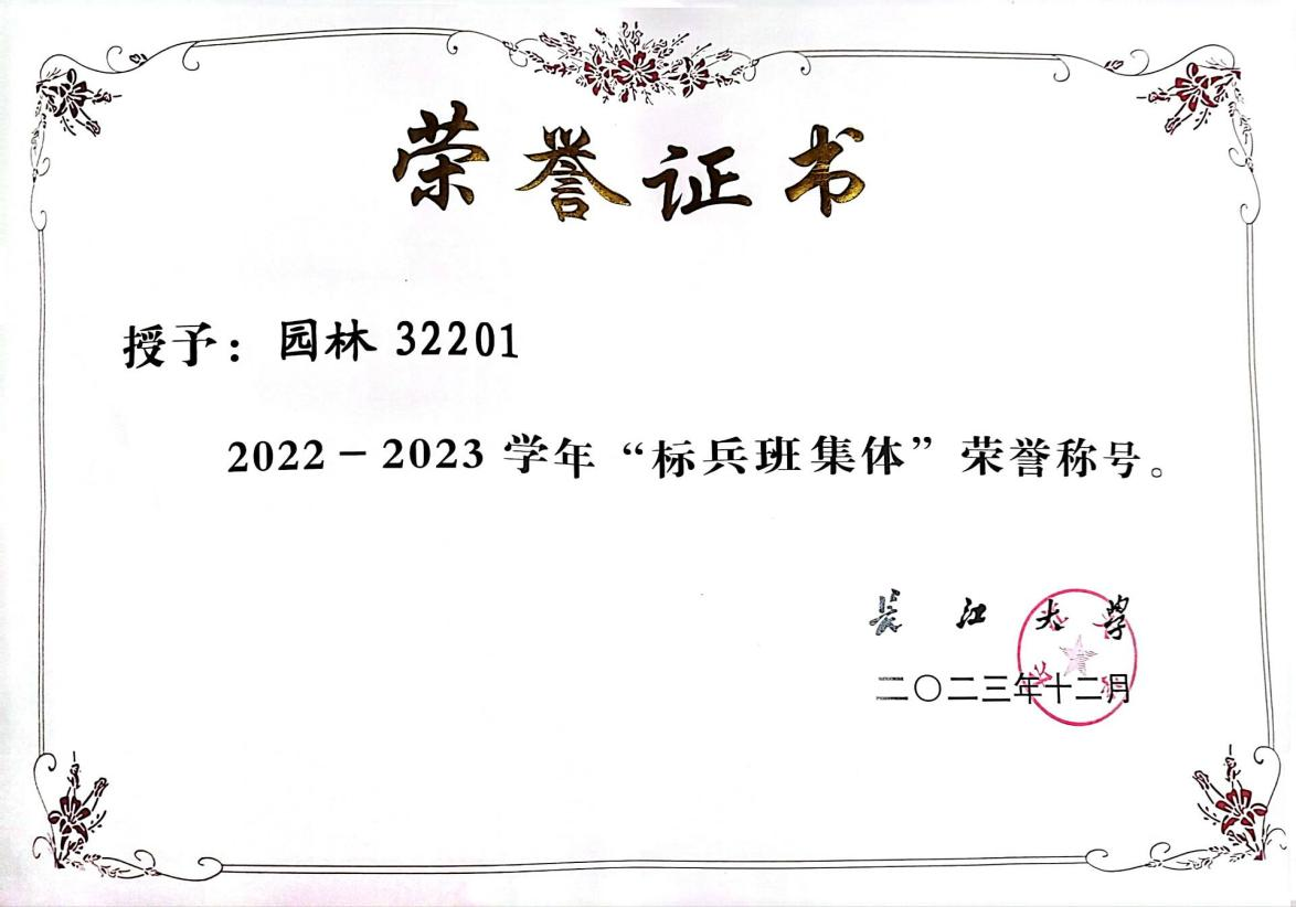 园林32201在2022-2023学年学生工作评优中,被评为标兵班集体 |