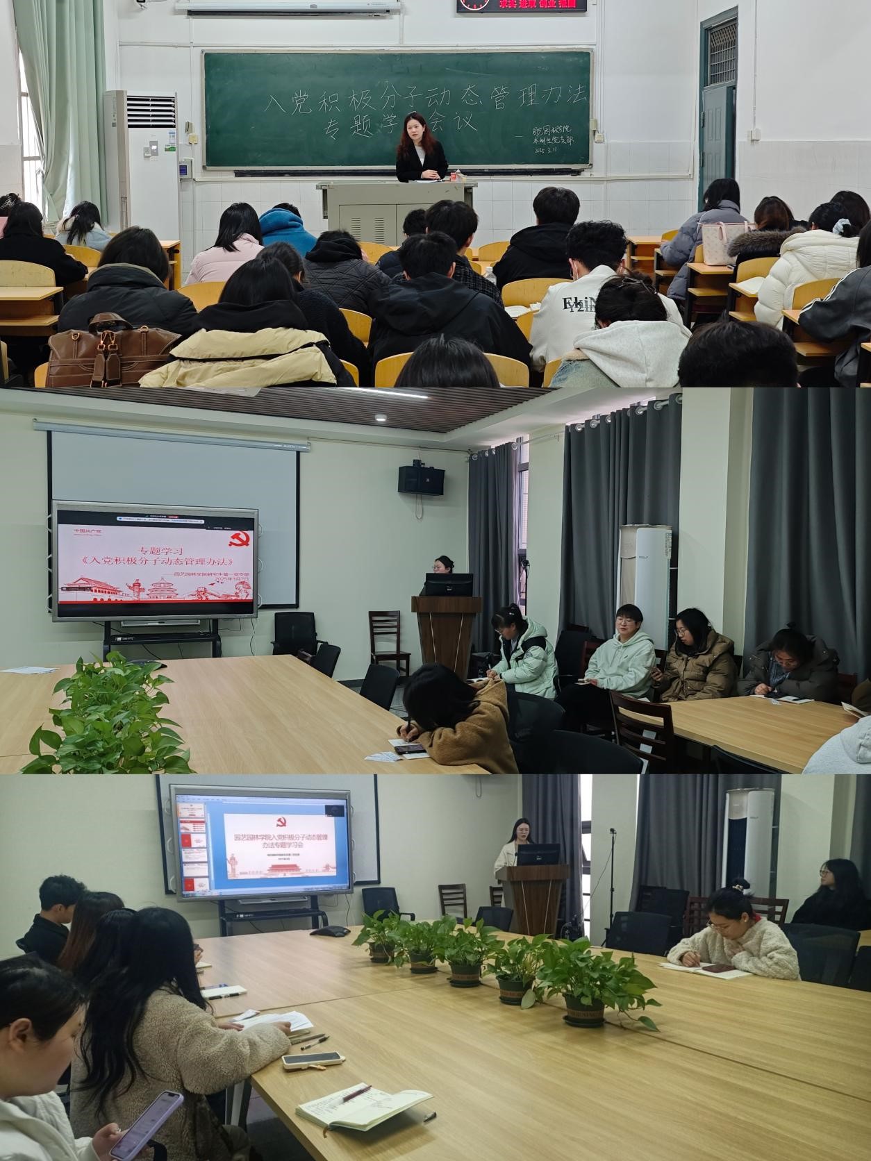 会议由各党支部书记卜文琼老师、张颖旭老师、吴山老师主持并详细解读《永利集团y23455入党积极分子动态管理办法》,重点介绍了入党积极分子的推荐标准、确定程序、培养措施及动态调整机制,明确了培养目标和管理要求,首在通过一系列科学合理的制度设计,确保入党积极分子队伍的先进性和纯洁性。