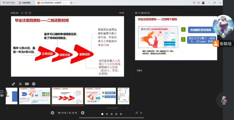 会议系统讲解了生源地助学贷款还款全流程。张颖旭结合最新政策,从还款时限、操作流程、注意事项三个维度进行详细解读,特别演示了云闪付APP还款操作步骤。针对毕业生关心的征信问题,会议重点剖析了逾期还款对个人信用记录的影响,通过典型案例警示学生珍视信用财富,树立"按时还款、诚信立身"的价值观。