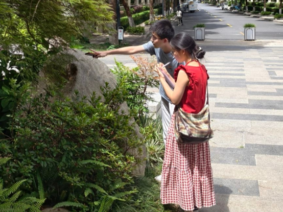 14日的考察聚焦钱塘江沿岸。上午,实践队参观钱塘江博物馆,学习潮汐文化与水利工程智慧。随后,队员们分组调研波浪文化广场,从建筑形态、地下中庭规划到商业设施布局,多角度解析其“浪潮”设计语言与城市空间的互动关系。队员康荣仓通过测绘发现:“广场的曲线铺装与江岸线呼应,地下中庭的光影设计巧妙引入了自然光,体现了‘隐性生态’理念。”下午,队伍深入CBD公园与森林公园,通过测绘工具记录植物群落配置与步道系统设计,分析人工湖与原生湿地的融合手法。专业教师现场指出:“公园通过‘微地形’营造空间层次,本土树种与观赏草的结合既保障生态功能,又满足了市民休闲需求。”
