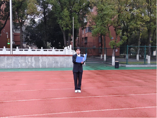 升旗仪式后,学生代表景园32402班吴佳婧进行国旗下讲话。她结合自己入学至今的学习经验,深入浅出地阐述了青春奋斗与自律对大学生成长成才的重要意义,号召同学们脚踏实地、砥砺前行,在专业学习、科研实践与学生工作中锤炼本领、不负韶华。