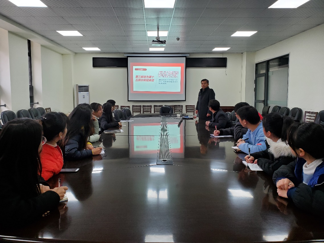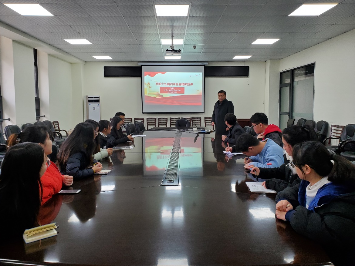 许老师重点阐述“坚持和完善中国特色社会主义制度、推进国家治理体系和治理能力现代化的重大意义”、“领会中国特色社会主义制度和国家治理体系的显著优势,坚定中国特色社会主义制度自信”、“准确把握坚持和完善中国特色社会主义制度、推进国家治理体系和治理能力现代化的总体要求、总体目标和重点任务”及“加强党的领导,确保全会确定的各项目标任务全面落实到位”这四大问题作为研究生的我们要时刻牢记党员身份,在科研工作中树立远大的目标,做好科研工作,与此同时,不断提高自己的党性修养,坚持实事求是、与时俱进,牢记信仰、坚定理想信念,争做一名合格的共产党员。此次活动积极构了建师生学习共同体,让学生党员向理论水平高的老师学习理论知识,关注时政热点问题,与此同时加强党的基本理论传播,营造出活跃、创造性理论学习氛围,共同进步。