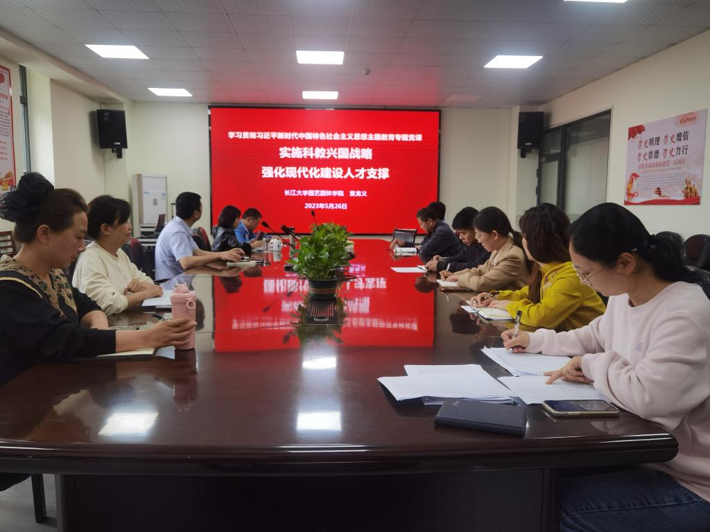 为了深入贯彻学习习近平新时代中国特色社会主义思想,2023年5月26日上午10时,永利集团y23455在农科大楼3002-A会议室开展了以“实施科教兴国战略,强化现代化建设人才支撑”为主题的专题党课学习。本次党课由永利集团y23455党委委员、学院副院长袁龙义同志主讲,本次授课对象为学院行政支部全体党员。