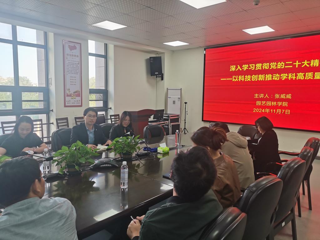 (通讯员 万宝荣)11月7日下午,在农科大楼3002A会议室,我院副院长张威威为教工党支部党员讲授党课《深入学习贯彻党的二十大精神——以科技创新推动学科高质量发展》。