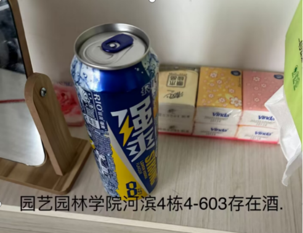河滨4栋603,景园32301班,韩光裕,男:寝室存在违规物品-酒。