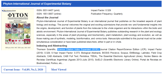 《Phyton-International Journal of Experimental Botany》是1932年创刊,季刊,目前影响因子为0.329。