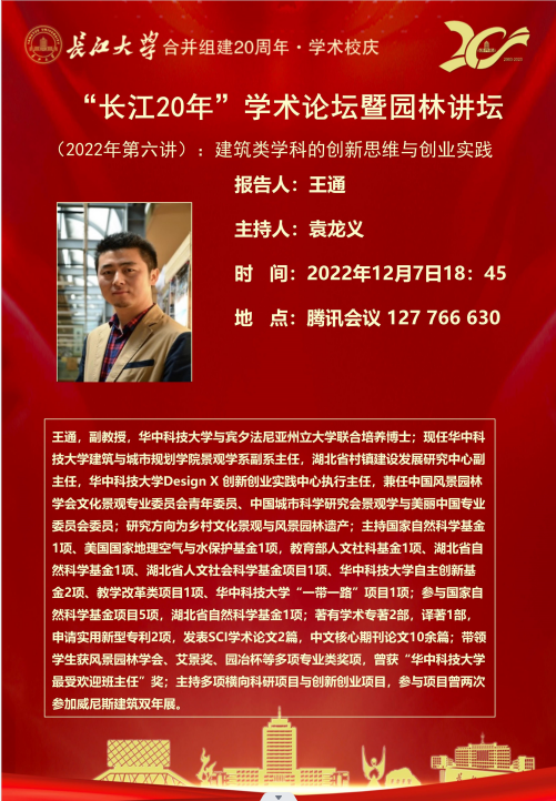 “长大20年”学术论坛暨园林讲坛 (2022年第六讲):建筑类学科的创新思维与创业实践