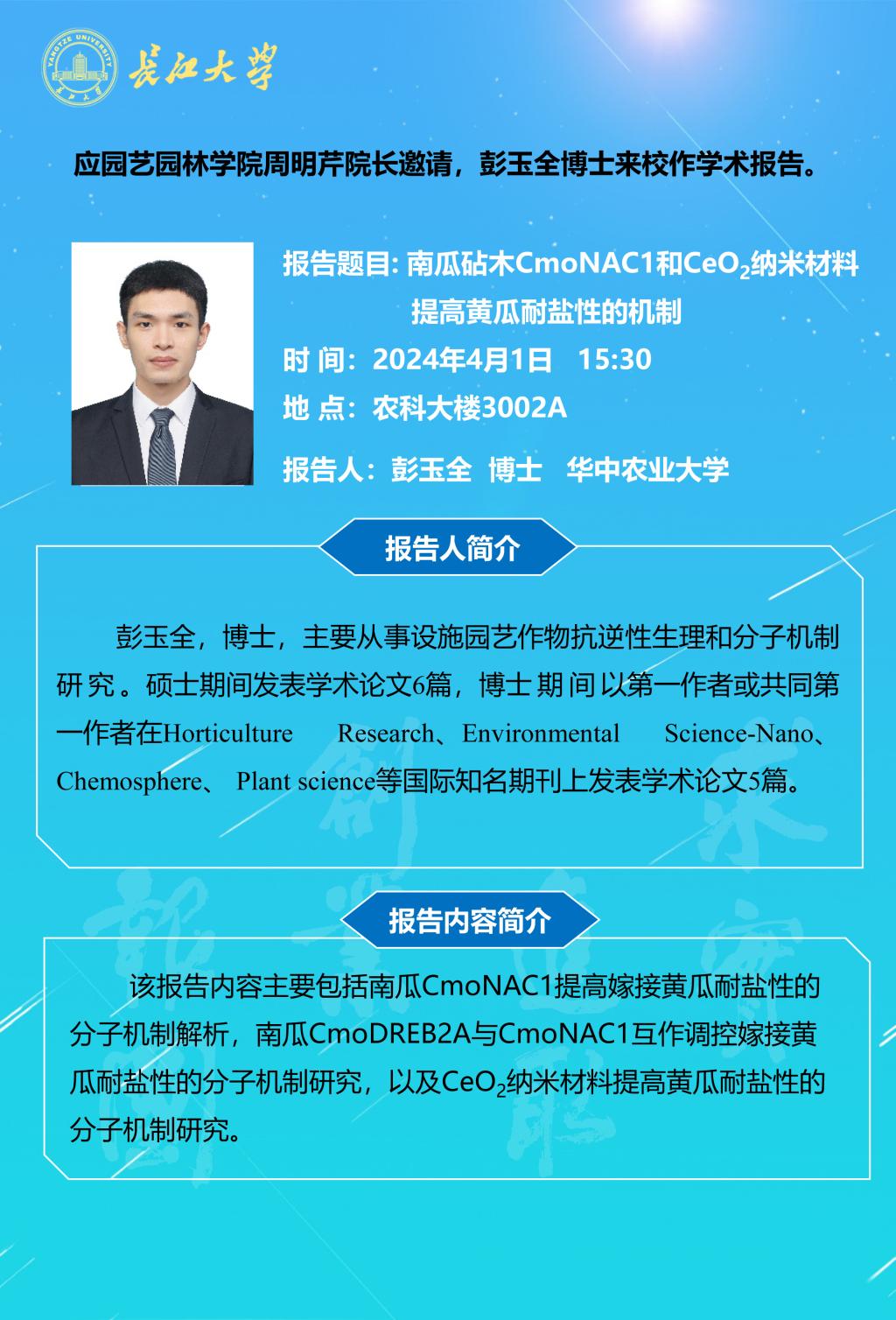 园林讲坛(2024年第四讲):南瓜砧木CmoNAC1和CeO2纳米材料提高黄瓜耐盐性的机制