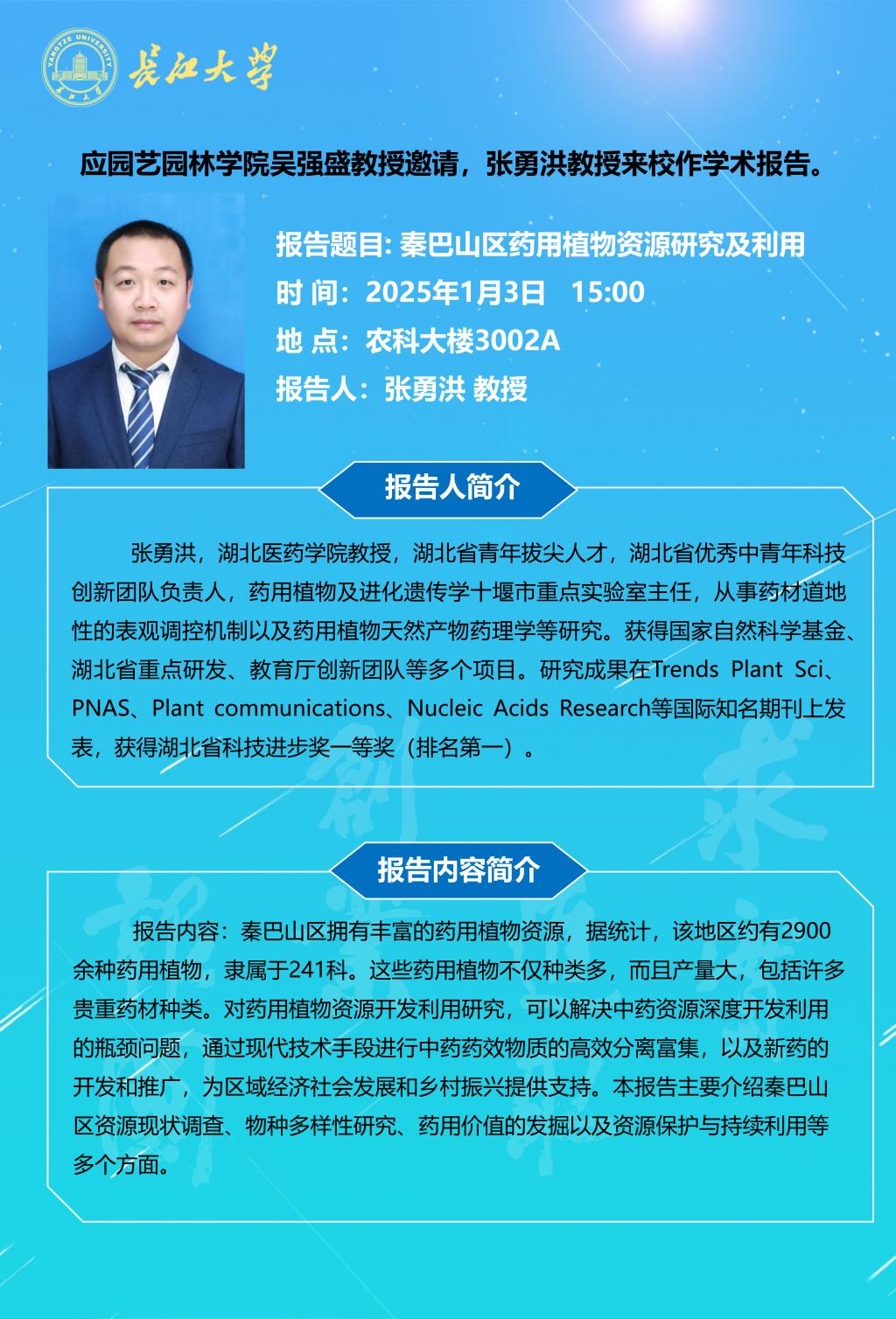 园林讲坛(2025年第一讲):秦巴山区药用植物资源研究及利用