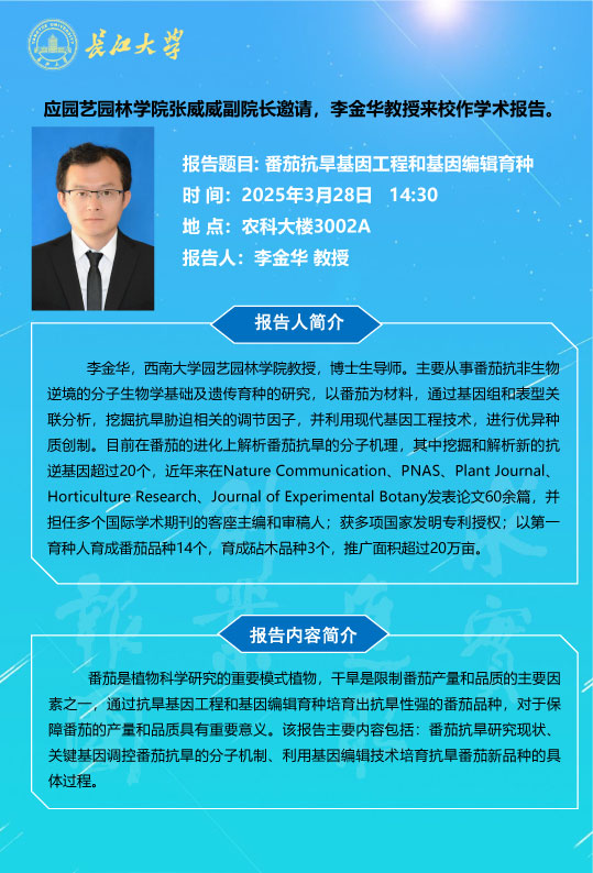 园林讲坛(2025年第四讲):番茄抗旱基因工程和基因编辑育种