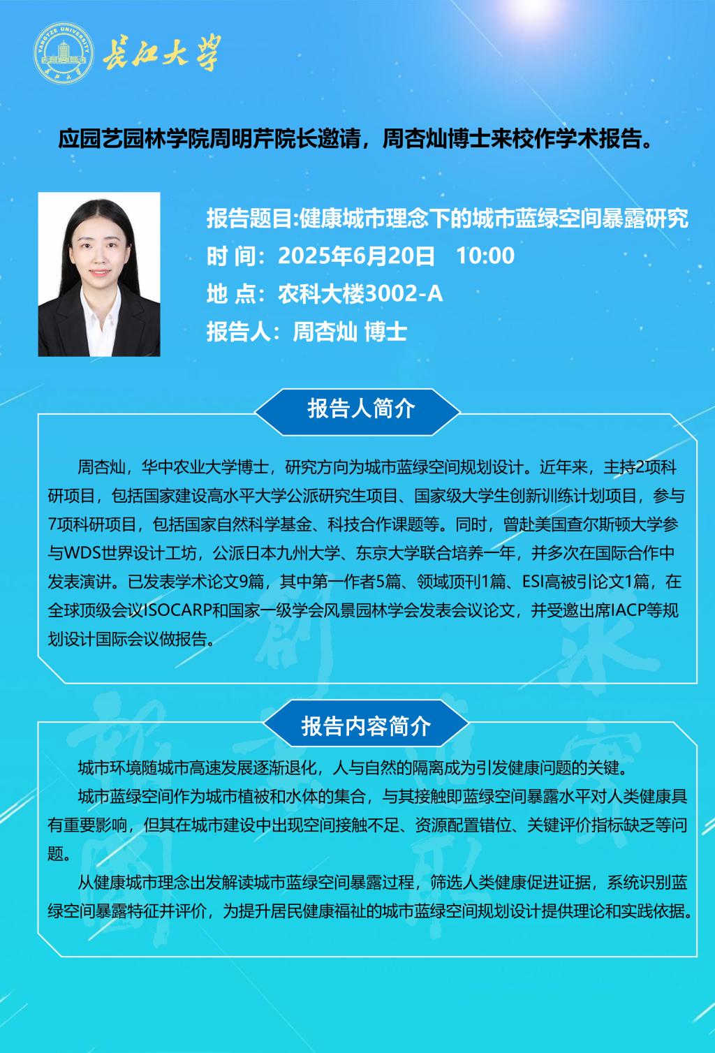 园林讲坛(2025年第十二讲):健康城市理念下的城市蓝绿空间暴露研究