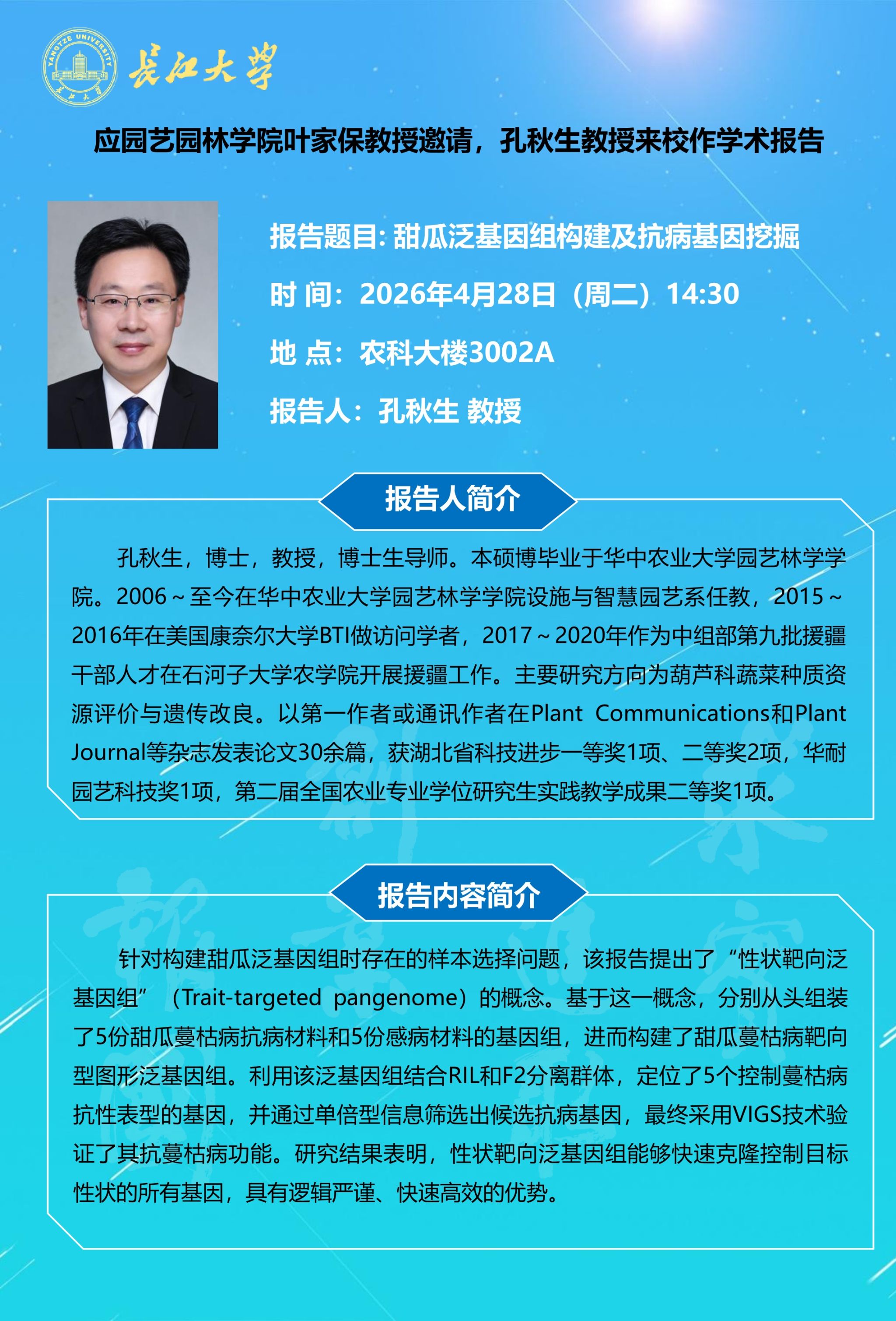 园林讲坛(2026年第一讲):甜瓜泛基因组构建及抗病基因挖掘
