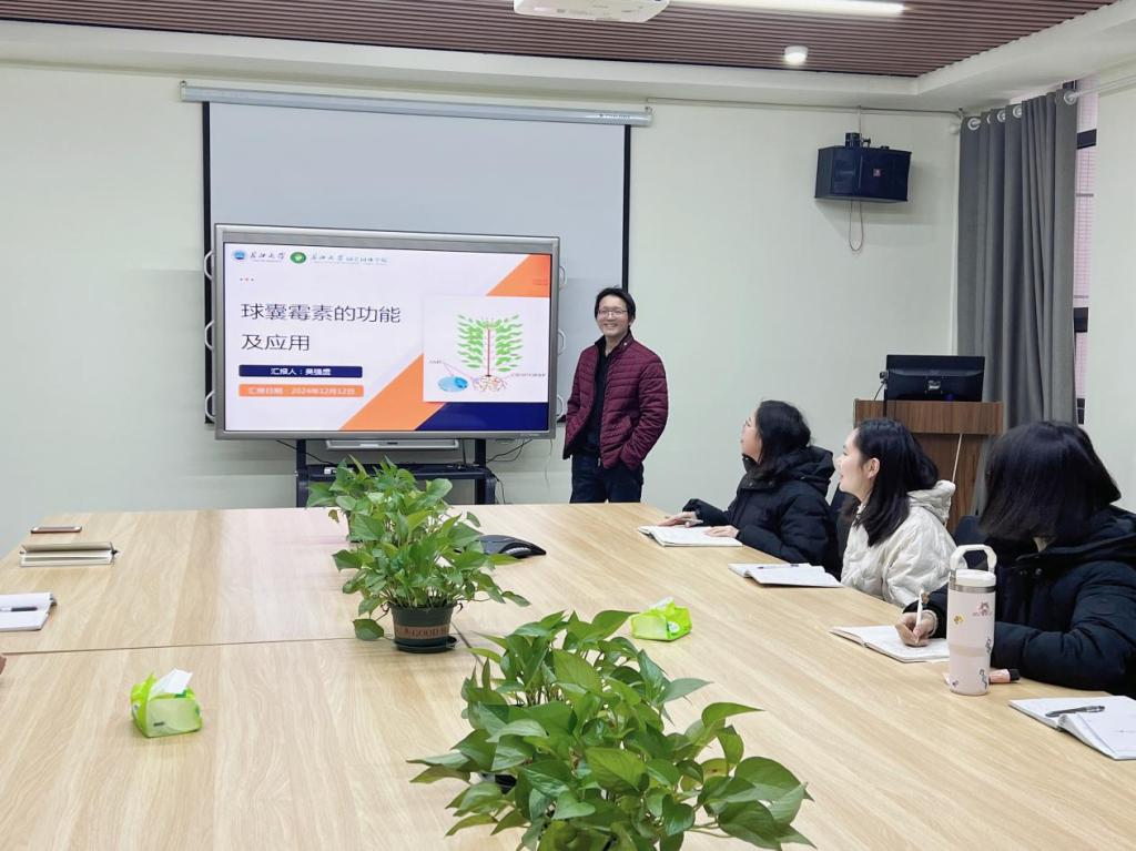 (通讯员 吴强盛)2024年12月12日,学院在3002B会议室举行了主题为“球囊霉素的功能及应用”的学术讲座,吴强盛教授为主讲人,园艺方向青年教师和硕士研究生聆听了本次学术报告。