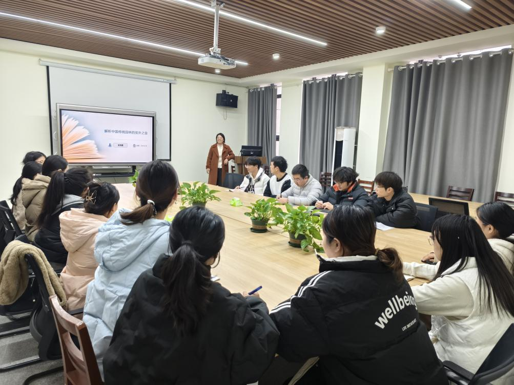 2024年12月10日,永利集团y23455副教授王万喜在农科大楼3002B会议室为我院风景园林专业研究生举办一场以“解析中国传统园林的弦外之音”为主题的学术报告。报告伊始,王万喜副教授首先阐述了“弦外之音”这一概念在中国传统园林中的特殊意义。她指出,中国传统园林不仅注重自然景观的营造,更强调人文情怀和审美意境的传达。园林中的每一处设计、每一座建筑、每一片植物,都蕴含着深厚的文化内涵和象征意义,这些元素共同构成了园林的“弦外之音”。