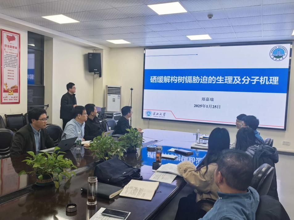 郑嘉瑞副教授在题为《硒缓解构树镉胁迫的生理及分子机理》的报告中,构建了外源硒缓解构树镉胁迫的分子调控网络,明确了硒通过调控镉转运蛋白基因ZIP10表达及其上游转录因子,构建“硒信号–转录因子–转运蛋白–镉积累”的分子通路模型,为创制低镉积累的木本蛋白饲料新种质提供了关键基因资源与理论依据。